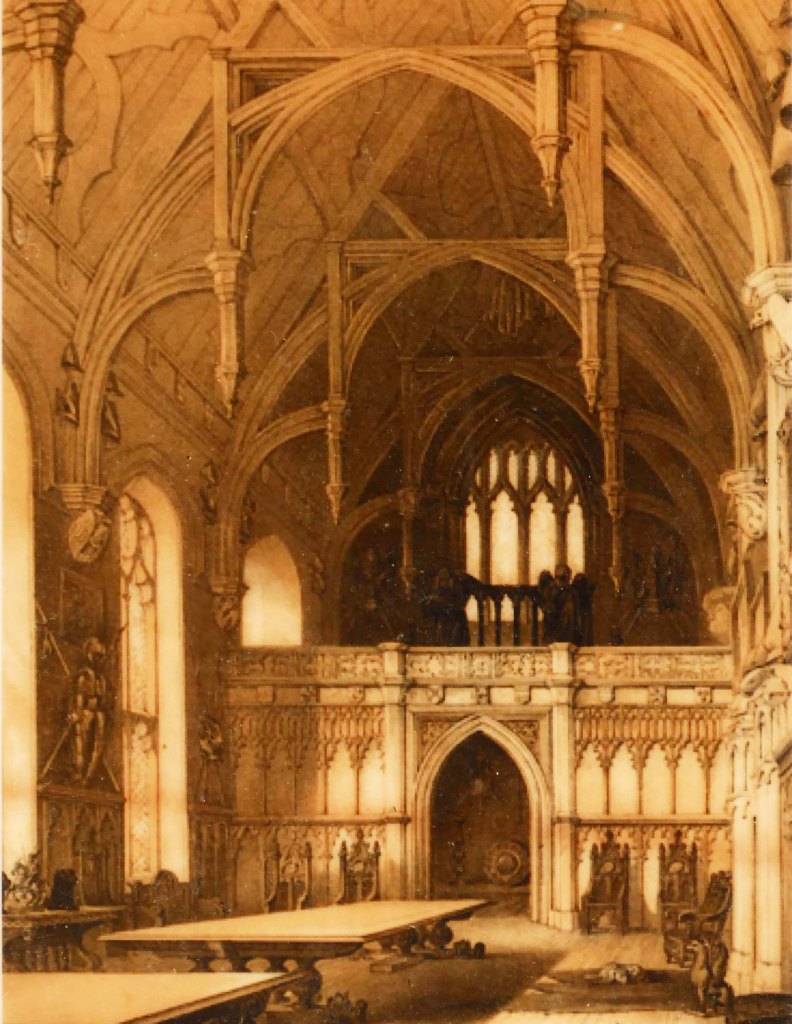 Needless to say, the Tennyson d”Eyncourts were rich and powerful owning much land in the area. In the centre of his 360 acre Tealby estate was Bayons Manor which Charles had built between 1836-42 in flamboyant gothic style in an elevated position. Approached from the west there was a kilometre long drive that swept past the many bays of the west front to enter the building from the north over a lake and through a solid square towered entrance with a portcullis. All was in high Victorian gothic, which was so popular at the time.