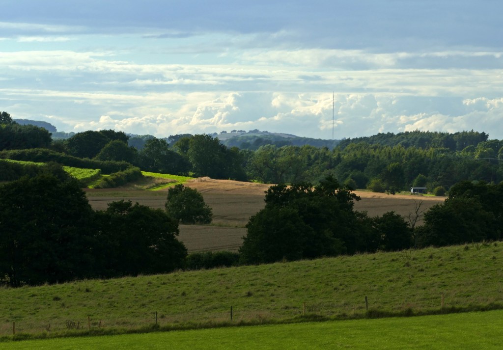 Although not visible, at Dalby the land descends down to the River Lymn. The wooded hamlet stands on a ledge protruding out from the otherwise steep scarp slope. This is a mile long ridge of Roach Stone at about 55 metres asl and carries the A 16 on a less steep route down the scarp slope to Langton Beck. The beck flows past Partney where it is now only 15 metres asl with the River Lymn just beyond it a few hundred metres away. The two eventually merge after flowing roughly parallel for about a mile This spur of Roach Stone is significant in that it helps to enclose Lymndale in Tennyson’s “Circle of Hills” leaving only a mile wide valley before rising up again to a less dramatic sandstone ridge on which the market town of Spilsby stands. At Spilsby the ridge is only 50 metres asl but steadily rises as one continues to pan clockwise around to the southern horizon where it reaches 100 metres asl at Lusby; a hillside hamlet just a couple of miles distant to the southwest from our observation point. The top of the ridge between Lusby and Asgarby is capped by Claxby Ironstone and completes the 360 degrees pan.