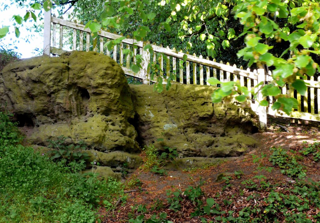 This description of the village gives the impression that the writer was in a hurry to move on and did not venture far from the road. Today the church has gone along with the cedars and caves. Although it is unlikely the latter ever existed and were no more than a thick overhang of ivy supported by a tangle of tree roots. The cliff remains however and beside it a climb up brick steps under the shade of a broad beech to the churchyard. These steps are most interesting in that they take you from the wet clay valley onto the dry sandstone plateau. The loss of the church and the building of a few large new houses has changed the character of the village since the 1960s.